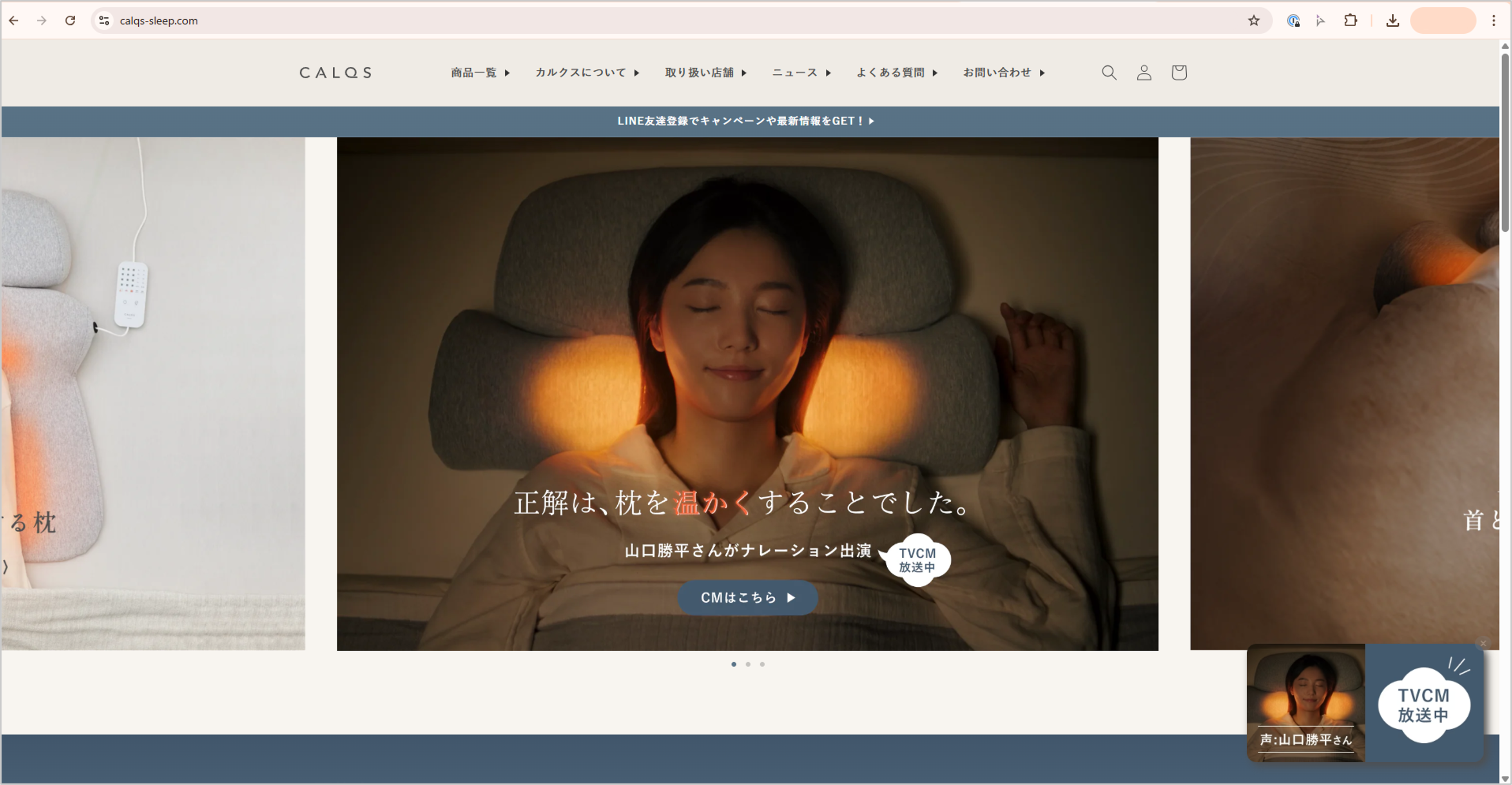 まず、CALQSらしい“やわらかなトーン”が自然と伝わるよう写真や色味を整え、ブランドの特徴が伝わりやすい構成に刷新。商品ページも、枕ごとの違いや特徴が比較しやすいよう整理し、どれが自分に合うのかがわかりやすい導線にしています。