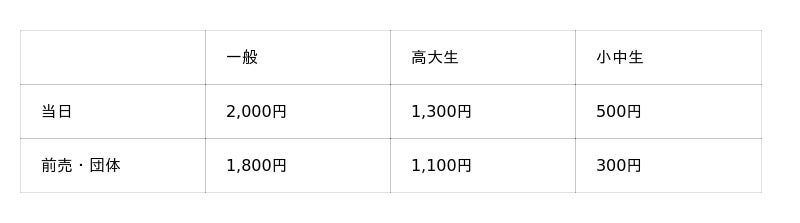 ※未就学児、障がい者手帳等をお持ちの方(介護者1名を含む)は無料(要証明)。障がい者手帳等は日本の法律に基づき交付されたものに限ります。