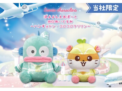 全24種のサンリオキャラクターズのプライズ「サンリオキャラクターズ ぽよよんえあぽ~と」が、空港をテーマにしたオリジナルデザイン全24種類の「BIGぬいぐるみ」になって毎月登場予定です。第一弾~第七弾では、「シナモロール」と「ウサハナ」、「けろけろけろっぴ」と「マロンクリーム」、「リトルツインスターズ」、「ポチャッコ」と「がおぱわるぅ」、「ポムポムプリン」とチームプリン、「あひるのペックル」、「こぎみゅん」、「クロミ」、「バッドばつ丸」が登場し、今回の第八弾では「ハンギョドン」、「コロコロクリリン」が登場いたします。
