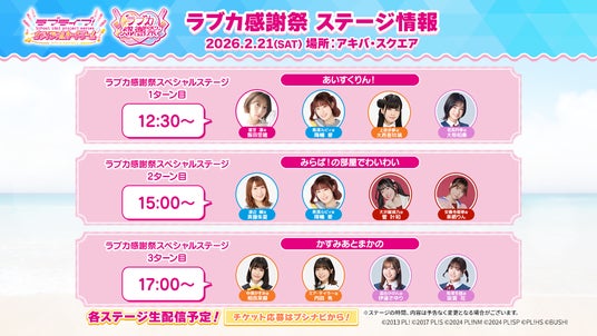 株式会社ブシロード(本社:東京都中野区、代表取締役社長:木谷高明)は、「ラブライブ!シリーズ オフィシャルカードゲーム(以下、ラブカ)」から、2026年2月21日(土)・22日(日)に開催される「ラブカ感謝祭」の新情報を公開したことをご報告いたします。