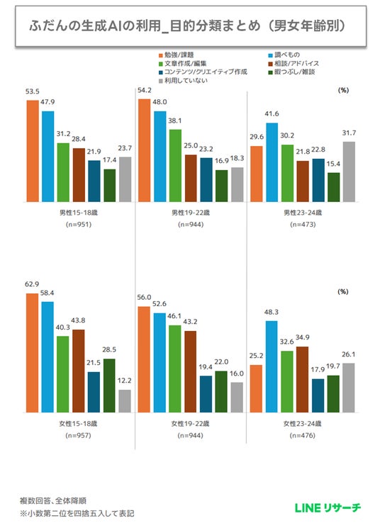 LINEリサーチ、全国の15~24歳の男女を対象に、若年層の生成AI利用に関する調査を実施