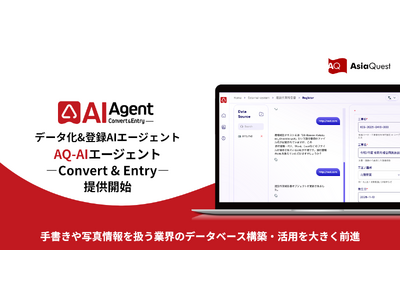 アジアクエスト(本社:東京都文京区)は、自社で開発・提供しているAIエージェントを搭載した業務効率化サービス「AQ-AI エージェント」において、手書き・画像・文書など多様なデータを解析し、必要情報を業務システムやデータベースへ自動登録する入力支援サービス 「AQ-AIエージェント Convert & Entry」 をリリースしました。