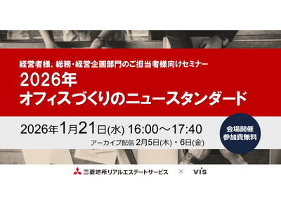 本セミナーでは、三菱地所リアルエステートサービス株式会社、株式会社ヴィスの専門家が2026年のオフィスマーケット見通しと移転検討の重要ポイント、最新のオフィストレンドと2026年を見据えたデザイン戦略を解説します。今後のオフィス戦略を具体化するためのヒントが得られる内容です。