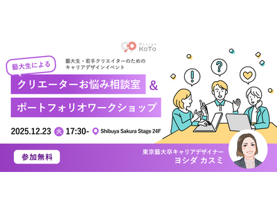 株式会社アピリッツは、2025年12月23日(火)にオープンスペースを公開し、Design KOTO株式会社が企画する「クリエーターお悩み相談室 & ポートフォリオワークショップ」を開催いたします。
