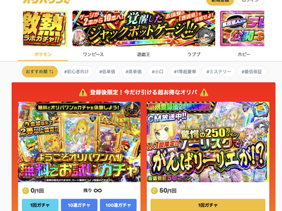 オリパワン(https://oripaone.jp) は、オンラインで気軽にトレーディングカードの“ワクワク体験”を楽しめるオンラインオリパサービスです。