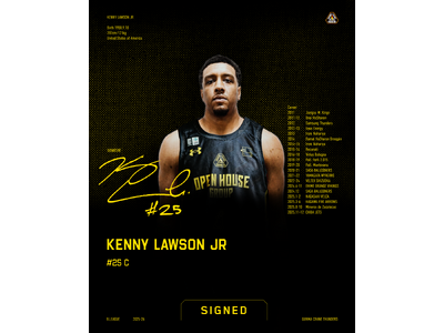 この度、群馬クレインサンダーズでは、#25 ケニー・ローソン・ジュニア選手とのBリーグ2025-26シーズンの選手契約(新規)が基本合意に達しましたのでお知らせいたします。