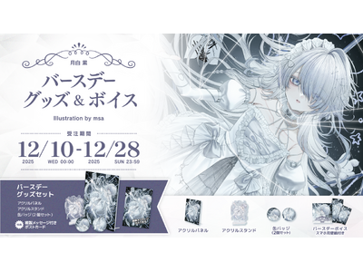 本日・12月10日に誕生日を迎えた月白 累のバースデーグッズの詳細を公開するとともに、公式オンラインショップ「VEE Official Shop」にて受注販売を開始しました。