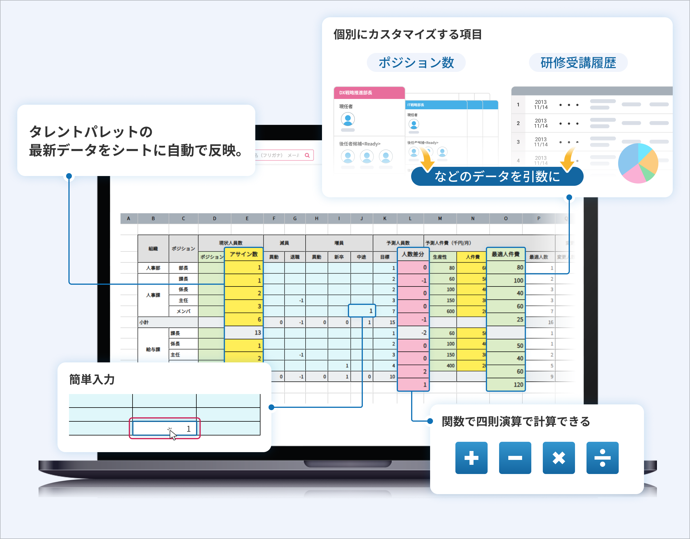 ■企業独自のレイアウトや集計項目に対応した要員計画表の作成が可能に