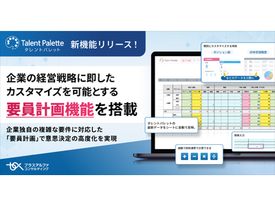株式会社プラスアルファ・コンサルティング(本社:東京都港区、代表取締役社長:三室克哉、証券コード:4071)は、データに基づく人材活用や人的資本経営の実践、人事業務のDX化、リスキリングのなどを背景に、多くの企業で導入が進むシェアNO.1(*1)タレントマネジメントシステム「Talent Palette(以下:タレントパレット)」に、企業の経営戦略に即した要員計画を効率的に作成できる新機能を搭載しましたことをお知らせします。