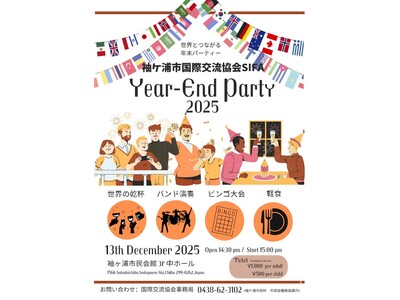 市国際交流協会では、多様な文化を持つ方々が楽しめる交流イベントとして「袖ケ浦市国際交流協イヤーエンドパーティー」を開催します。