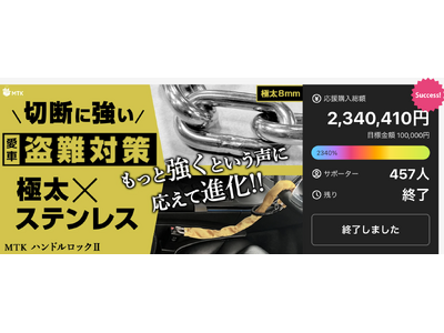 「MTK ハンドルロック2」は、Makuakeにおいて目標金額に対して2340%という驚異的な達成率を記録し、大きな反響をいただきました。