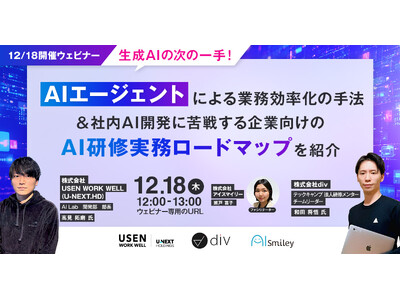国内最大級のAIポータルメディア「AIsmiley」を運営する株式会社アイスマイリー(東京都渋谷区、代表取締役:板羽晃司)は、2025年12月18日(木)12時からウェビナーを開催します。
