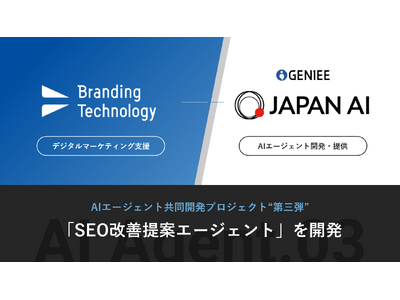 ブランディングテクノロジー株式会社(代表取締役社長:木村 裕紀、本社:東京都渋谷区、証券コード7067、以下当社)は、株式会社ジーニー(代表取締役社長:工藤 智昭、本社:東京都新宿区、証券コード6562)のグループ会社であるJAPAN AI株式会社(代表取締役社長:工藤 智昭、本社:東京都新宿区、以下、JAPAN AI)との資本業務提携に基づく共同開発プロジェクトの第三弾として、「SEO改善提案エージェント」を開発したことをお知らせします。