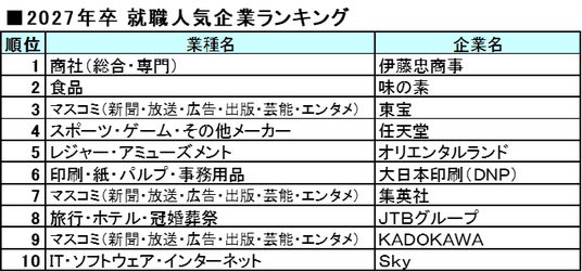 ▽「2027年卒就職人気企業ランキング」の詳細は以下URLよりご覧ください。