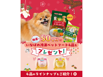 本キャンペーンでは、抽選で50名様にいなばの冷凍ペットフード4種をプレゼントいたします。