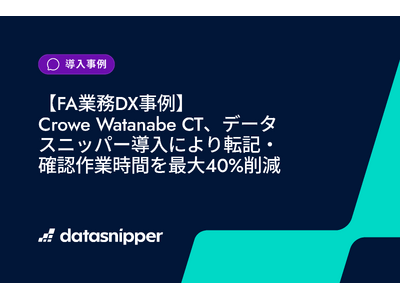 SwiftLink株式会社(本社:東京都中央区、代表取締役:田中 智史)が営業支援を行う DataSnipper B.V.(本社:オランダ・アムステルダム、代表取締役:Vidya Peters、以下 DataSnipper)は、M&Aアドバイザリー・デューデリジェンス・バリュエーションを手がける株式会社 Crowe Watanabe CT(旧:株式会社キャピタル・ストラテジー・コンサルティング)の DataSnipper(データスニッパー)導入事例を公開しました。