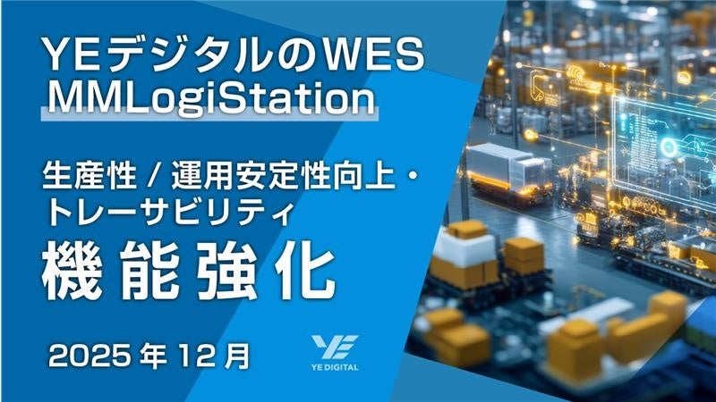 株式会社YE DIGITAL(本社:北九州市小倉北区、代表取締役社長:玉井裕治、以下「YEデジタル」)は、倉庫自動化システム「MMLogiStation」において、生産性の向上や運用の安定性向上に貢献する新機能を追加し、提供を開始しました。