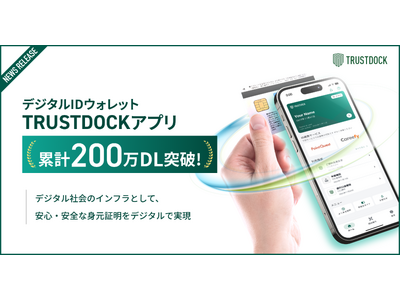 株式会社TRUSTDOCK (東京都中央区、代表取締役:千葉 孝浩) が開発・提供するデジタルIDウォレット「TRUSTDOCKアプリ」が、2025年10月20日 (月) 、累計200万ダウンロードを突破しました。