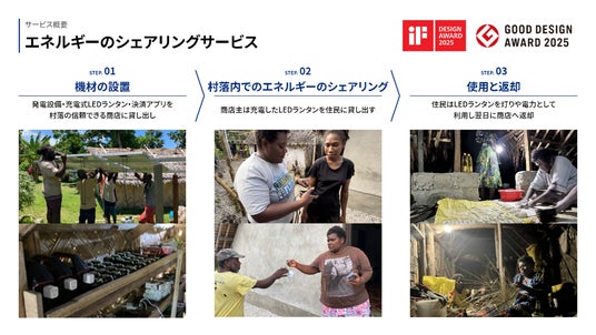 RT社が提供するサービスは、東芝がこれまで開発・試行してきた「Delighting Everyone Project(DEP)」を承継するもので、バヌアツ共和国マランパ州の未電化地域にある商店を拠点に、太陽光発電による充電式LEDランタンやバッテリーを地域住民に貸し出します。各商店には、東芝が開発した太陽光発電システムとスマートフォン向け決済アプリを導入し、地域が手軽かつ安価に電力へアクセスできる環境を構築します。このモデルは大規模なインフラ投資を必要とせず柔軟かつ迅速な展開が可能です。