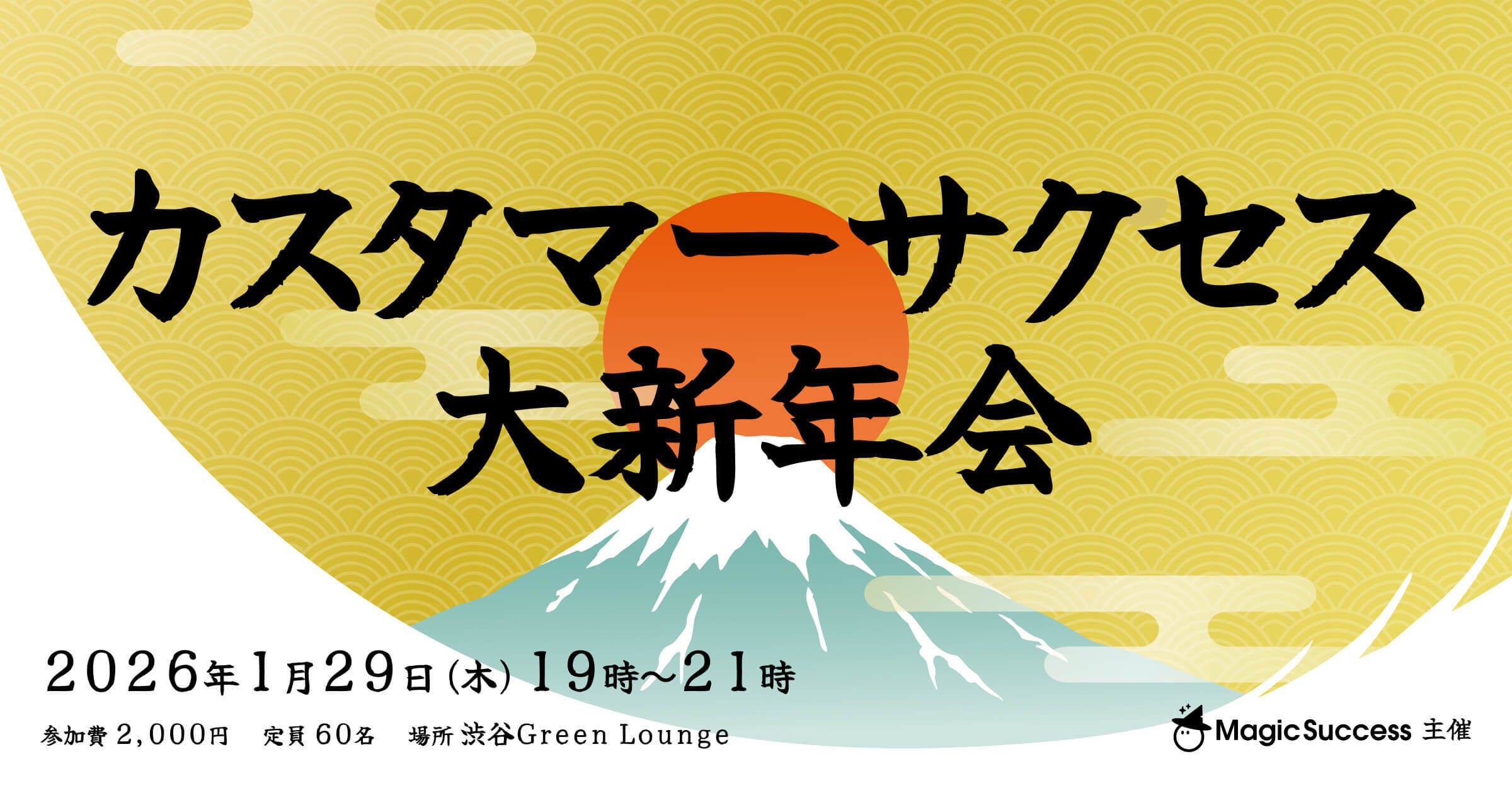 新春特別企画として、「カスタマーサクセス大新年会」を開催いたします。2026年を最高の1年にするべく、同じ志を持つカスタマーサクセスの仲間が一堂に集まり、新たな気持ちでスタートを切る特別なイベントです。当日は、おいしいお食事を囲みながら、今年の抱負や目標、挑戦したいことなどを、語り合いましょう!