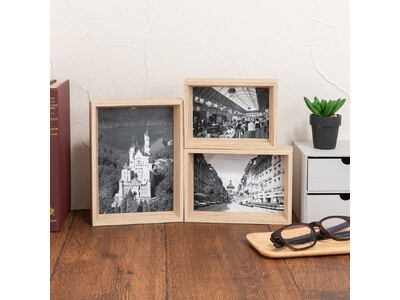 またフレーム幅が細いので写真やポストカートをより立体的に演出し、リビングやデスクを心地よい空間へ変えてくれます。