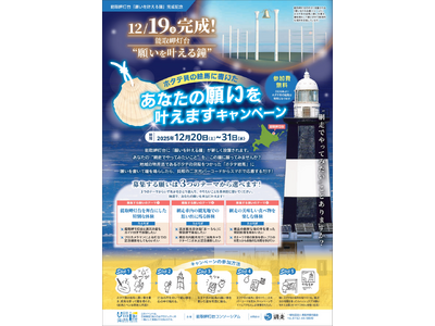 能取岬(のとろみさき)灯台コンソーシアムは、12月19日(金)に北海道網走市の能取岬に誕生する新スポット「願いを叶える鐘」の周知を目的にした企画「あなたの願いを叶えますキャンペーン」を実施します。