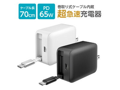 多摩電子工業株式会社(本社:神奈川県川崎市、代表取締役 執行役員社長 杉山一)は、巻取り式USB-Cケーブル内蔵+USB-Cポート搭載、最大65WのUSB Power Delivery(PD)対応のUSB充電器(PR-APC265CK、PR-APC265CW)を、2025年12月より各ECストアにて発売開始いたしました。カラーはブラックとホワイト、価格は5,980円(税込・送料込)です。