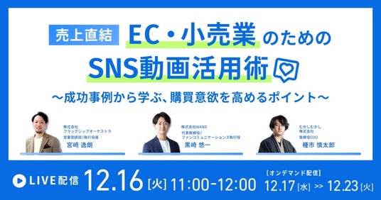 この課題に応えるべく、EC・小売業界の成功企業が実践する「売上直結のSNS動画活用術」に焦点を当てた無料オンラインセミナーを開催します。