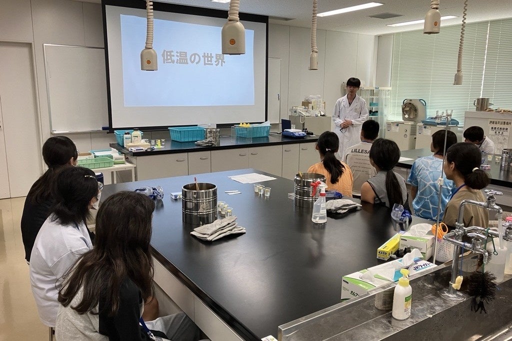 本セミナーは、次世代を担う中学生に理科や科学の楽しさを感じてもらう実験教室として2014年度から開催しています。生命科学科の尾山廣教授と松尾康光教授、瀬溝人生助教が講師を務め、理科教諭を目指す学部生や大学院生らが実験をナビゲートします。