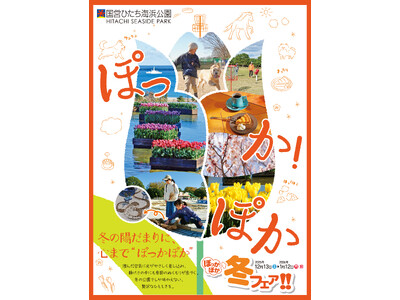 国営ひたち海浜公園では、12月13日(土)から年明けの1月12日(月・祝)まで、「ぽっかぽか冬フェア!!」を開催します。期間中は当公園の冬の風物詩となっている「干支の巨大地上絵」をはじめ、「新春招福太鼓」、「ミニ門松づくり」などのお正月イベントを実施。また、冬季に見頃を迎える「アイスチューリップ」、シートに覆われた様子がまるで雪景色のような「みはらしの丘」など、冬ならではの景色をご覧いただけます。心も体もホッと温まる特別な冬の体験をぜひお楽しみください。