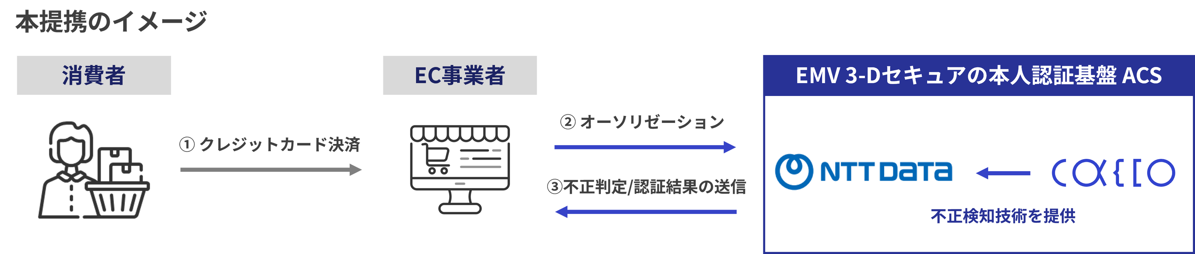 本提携により、両社はEMV 3DSの仕組みの一部で連携し、カード会社とEC事業者の双方の視点を踏まえた不正検知の高度化を推進してまいります。
