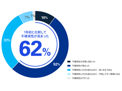 1.「62%」が、1年前と比べて経営環境の不確実性が高まっていると回答