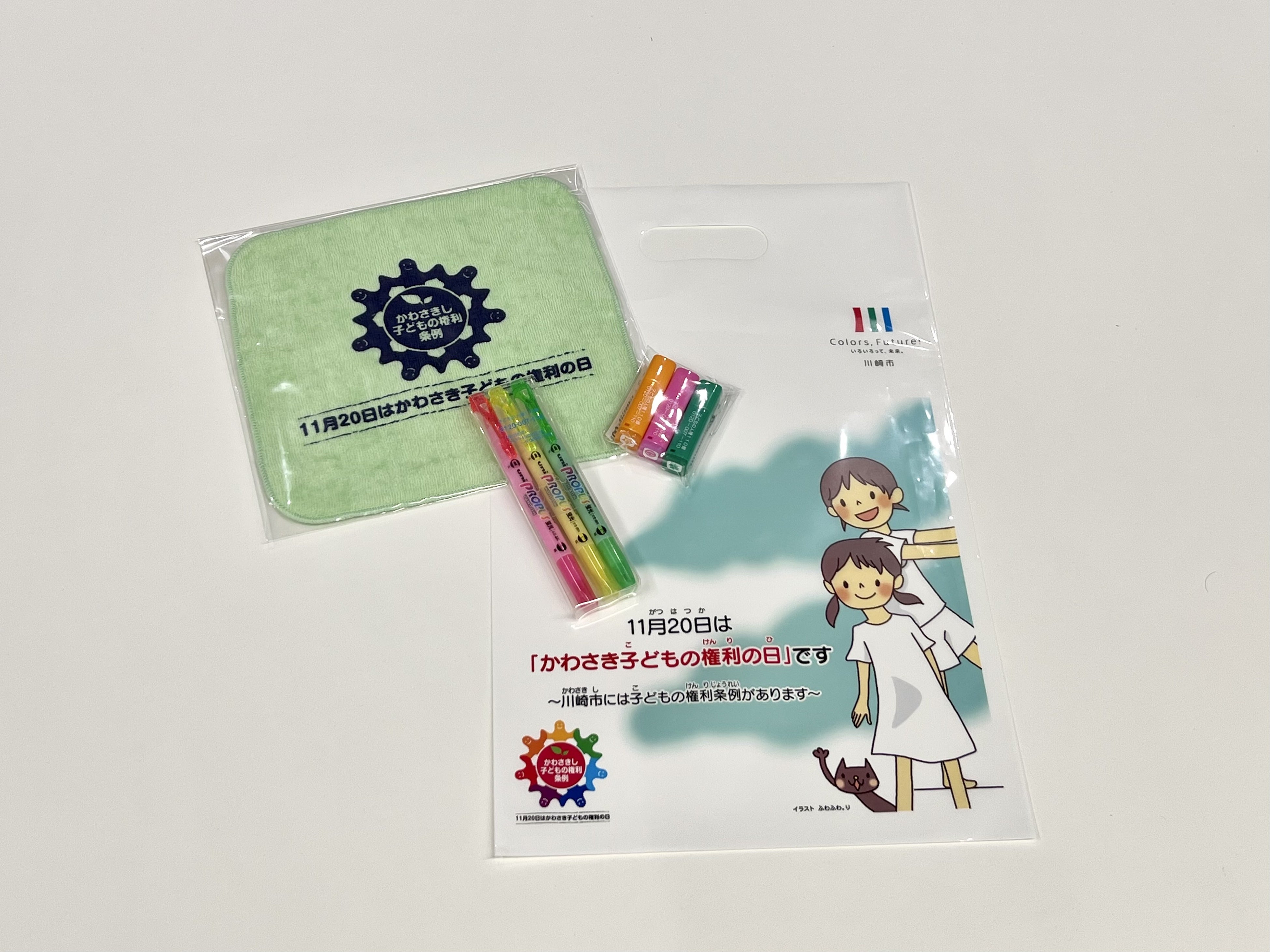 ▲クイズラリー参加者には子どもの権利グッズセットなどをプレゼント!(写真は例)