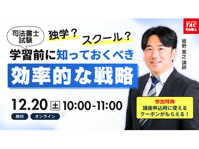 12月20日(土)10:00より開催いたします。これから学習を始める方、司法書士試験の受験を検討している方に向けたオンラインセミナーです。