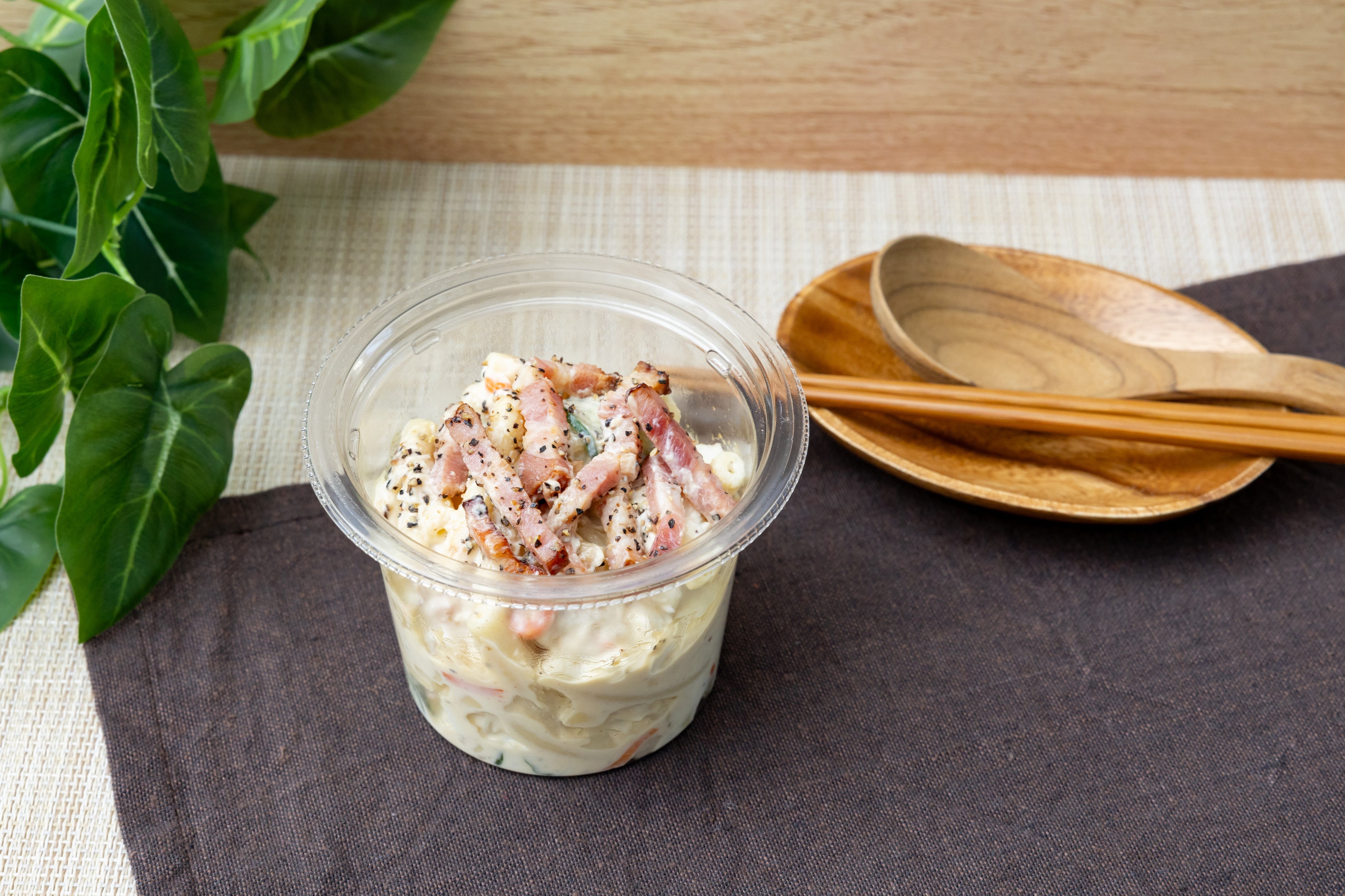 クリーミーなマカロニサラダに、ベーコンの旨味とブラックペッパーのキレを組み合わせ、噛むたびに、まろやかさと塩気、スパイスの刺激がゆっくりと広がり、「思わずもうひと口」と手が伸びる味わいです。