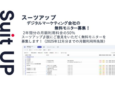 株式会社スーツ(所在地:東京都千代田区、代表取締役社長CEO:小松 裕介)は、AIでかんたん、チームのタスク管理・プロジェクト管理ツール「スーツアップ」において、デジタルマーケティング会社の無料モニターを募集いたします。