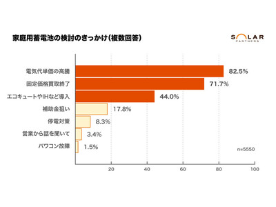 太陽光発電と蓄電池の見積もりサイト「ソーラーパートナーズ」を運営する株式会社ソーラーパートナーズ(本社:東京都新宿区、代表取締役:中嶋明洋)は、「家庭用蓄電池検討者のきっかけ」に関するアンケート調査の結果を発表しました。