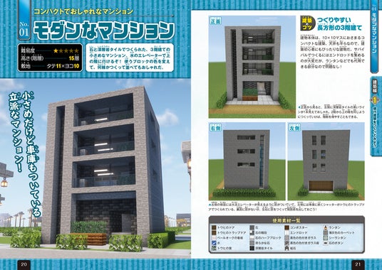 設計図と解説を参考に、まねするだけでカッコいい建物をつくれる人気シリーズ最新作! 1冊がまるごとワンテーマでまとまっており、モダンな建築物をマイクラで再現できる!