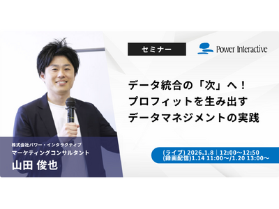 株式会社パワー・インタラクティブは、無料ウェビナー『データ統合の「次」へ!プロフィットを生み出すデータマネジメントの実践』を、1月8日にライブ開催、1月14日、1月20日に録画配信を行います。
