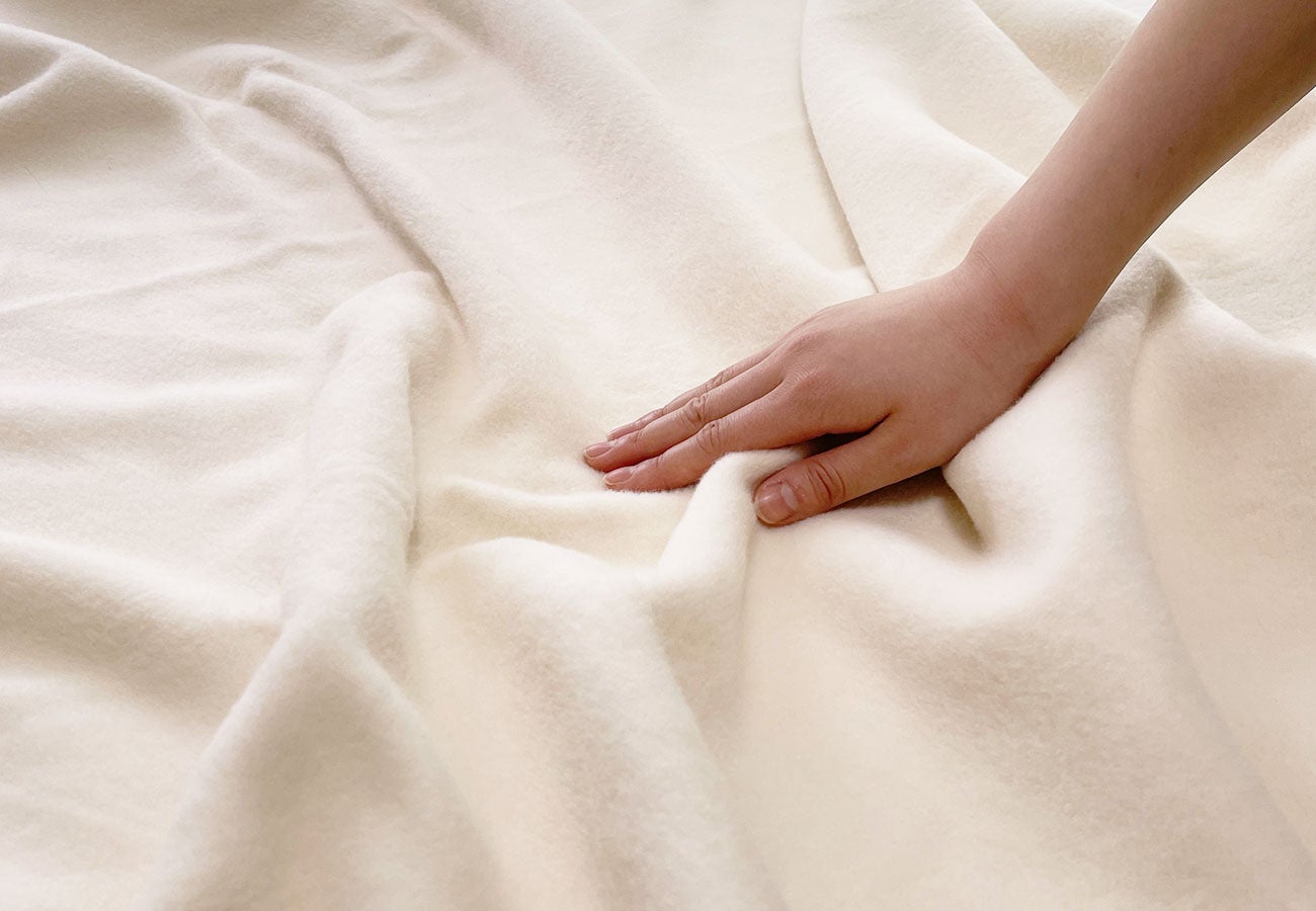 綿は吸湿性が高く、寝汗をしっかり吸収してムレを和らげます。同時に適度な保温性も兼ね備えているため、夏は涼しく、冬は暖かく、一年を通して快適な温度を保つことができます。特に化学合成繊維やポリエステル素材の毛布などに比べて、冬場の不快なムレは一気に軽減されます。