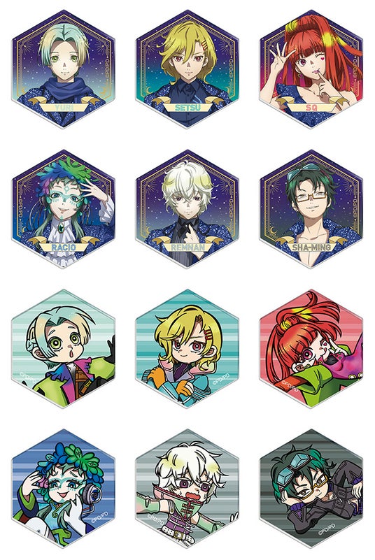 神秘的な装いに身を包んだユーリ、セツ、SQ、ラキオ、レムナン、沙明たち6人の「アクリルスタンド」、「メタルキャラバッジコレクション」といった新商品を発売いたします。さらに、ミニキャライラストを使用した「グラス」や、持ち運びやすいミニチュアサイズのアクリルスタンド「ちゅあスタ ミニチュアアクリルスタンドコレクション」などの商品もラインナップしています。