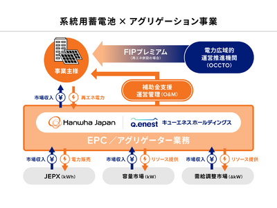当社が、EPC・補助金・O&M(運営管理)の支援、機器供給を担い、一方Q.ENESTが、アグリゲーター業務、電力取引を担うことで、導入から運用、市場取引に至るまで、グループ一貫体制でお客様の事業を支援します。