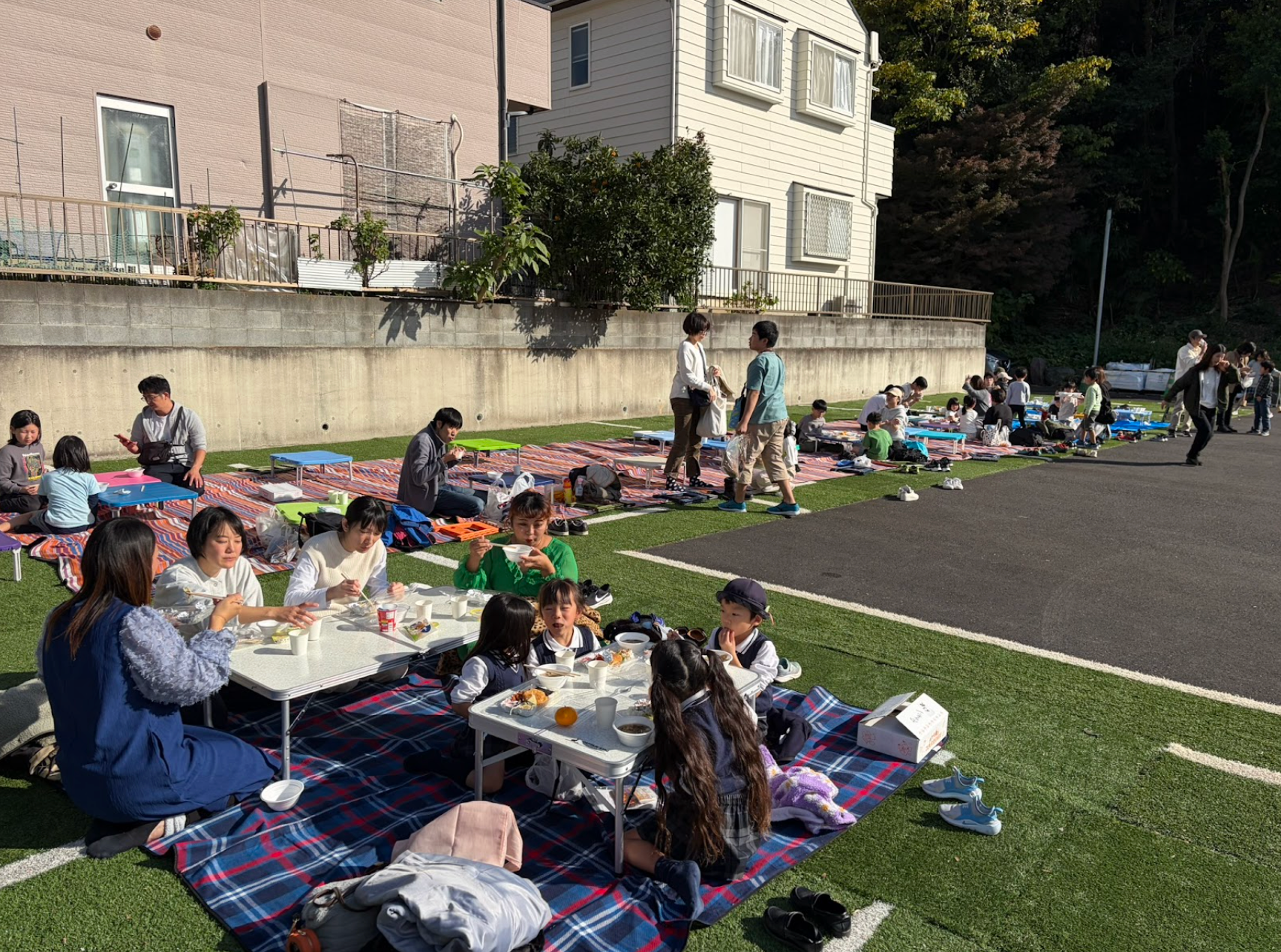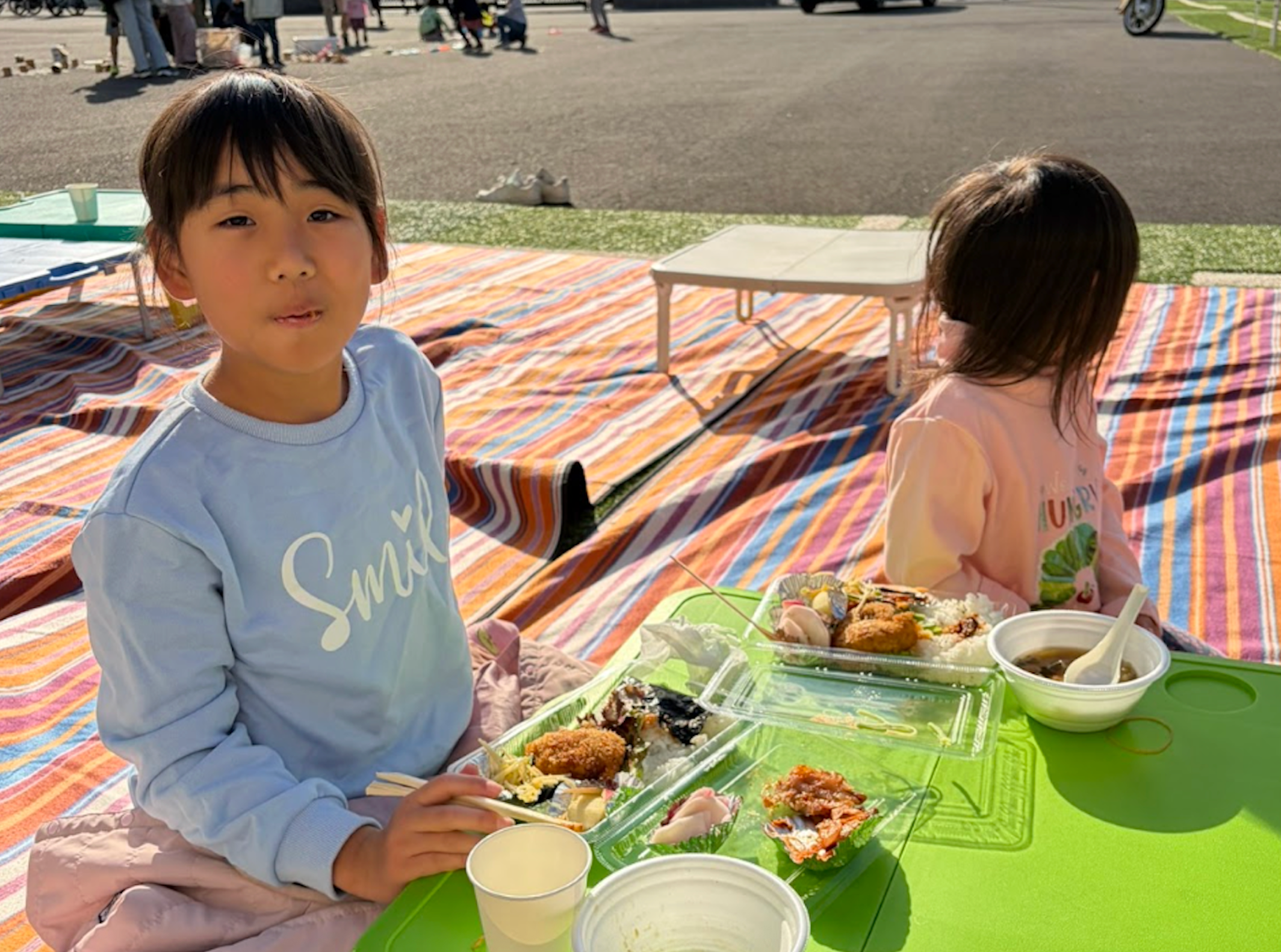 開催場所となった寺院内の広場では、敷かれたシートの上でピクニックのようにお弁当を味わうこどもたちの姿が見られ、あたたかな時間となりました。