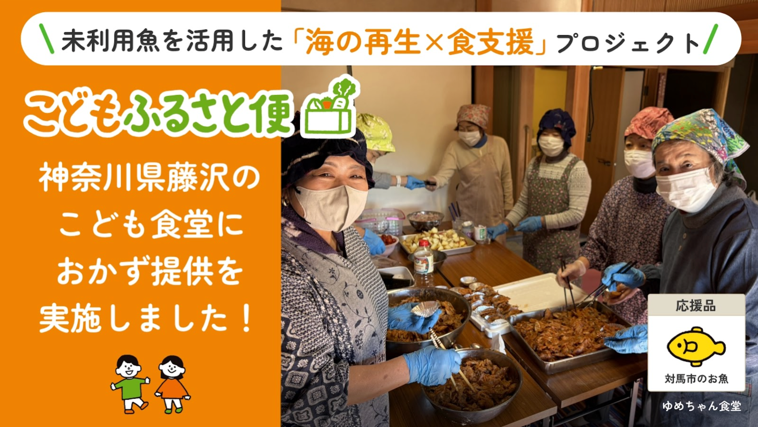 2025年11月22日(土)、2025年8月に寄付を募集していた長崎県対馬市のプロジェクトの一環として、神奈川県藤沢市のこども食堂に、対馬の魚を活用したおかずの提供を実施しました。