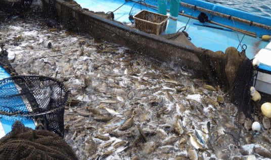網にかかった大量のアイゴ