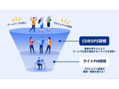 その活動を通じて、COROPSの土台となる「プロジェクト推進の基礎」を学びたいという声が多く寄せられたことにより「COROPS研修」の土台となる「ライトプロジェクトマネジメント研修」の開発に至りました。
