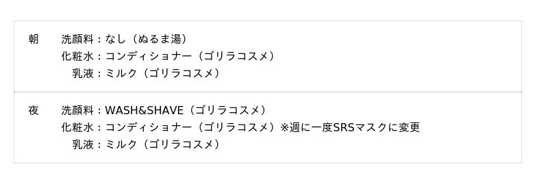 まず乾燥+皮脂の混合肌(一般的な男性肌)の私が普段使用しているものがこちらです。