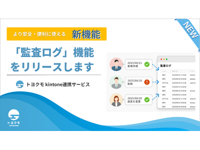 誰でも簡単に使えるビジネス向けのクラウドサービスを提供するトヨクモ株式会社(本社:東京都品川区、代表取締役社長:山本 裕次、以下トヨクモ)は、サイボウズ株式会社(本社:東京都中央区、社長:青野 慶久、以下サイボウズ)が提供する業務改善プラットフォームである「kintone」と連携するkintone連携サービスにおいて、ご利用いただく企業のガバナンス強化のニーズに応えるため、新たに「監査ログ機能」をリリースすることを発表いたします。