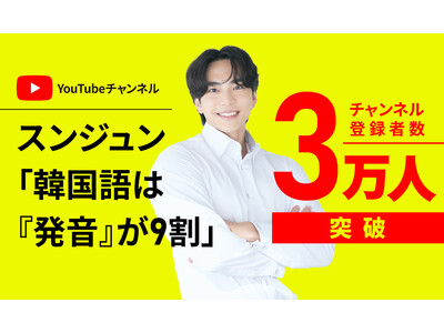 株式会社アクセントエース(東京都中央区)は、公式YouTubeチャンネル「スンジュン 韓国語は発音が9割」のチャンネル登録者数が3万人を突破したことをお知らせします。