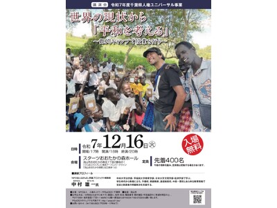 本講演会は、世界10カ国の紛争地・難民キャンプで教育支援を続けてきた現場の視点から、「平和」と「人権」を自分ごととして考える機会として開催されるものです。